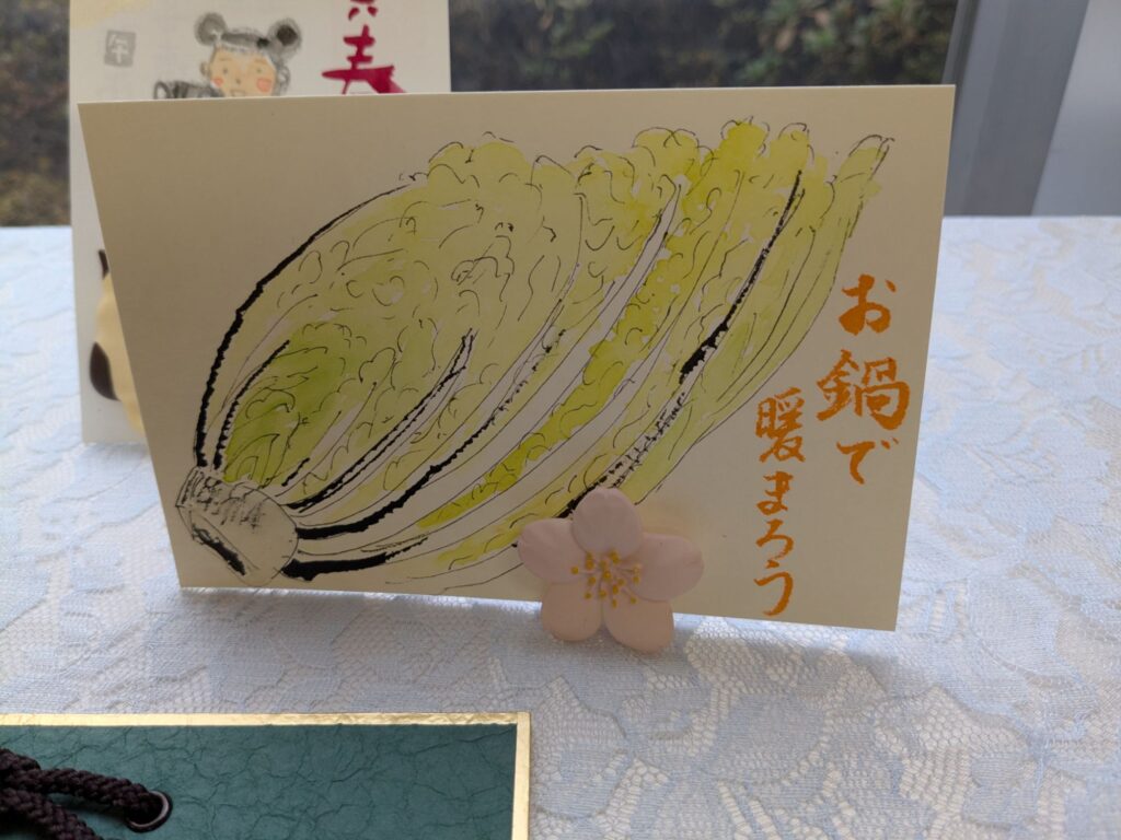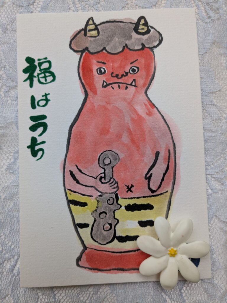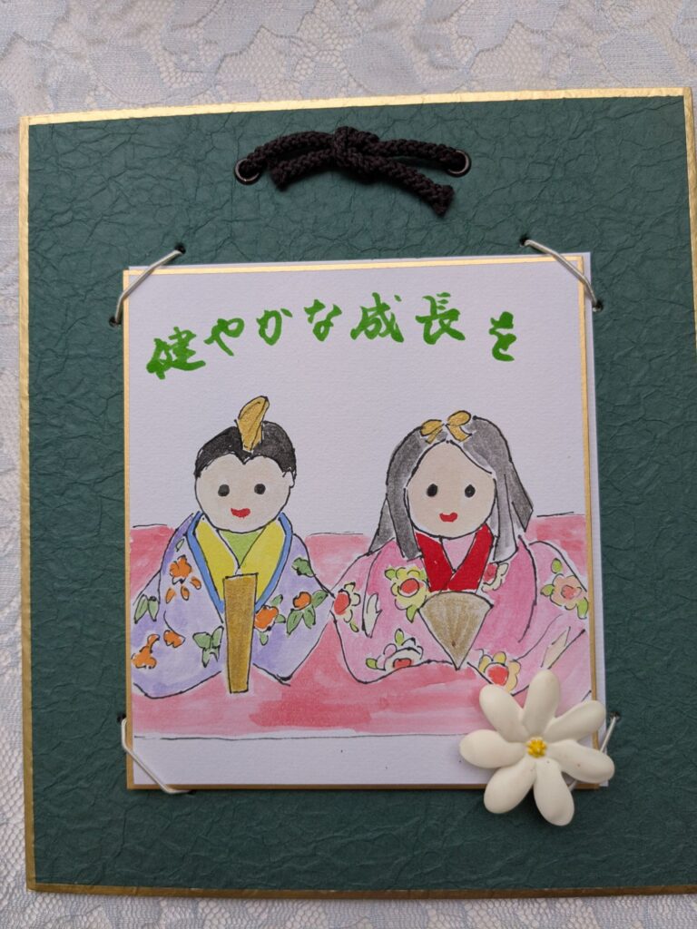 🎨絵手紙は、季節を先取りし、色紙にお雛様を描かれました