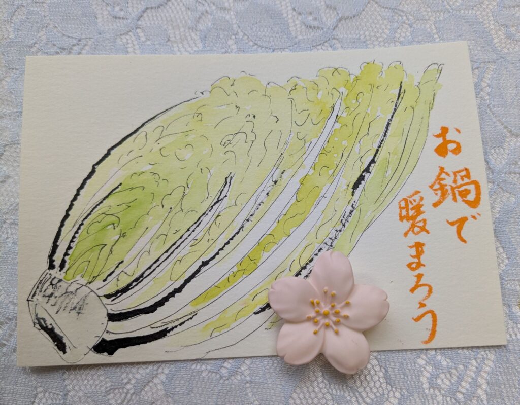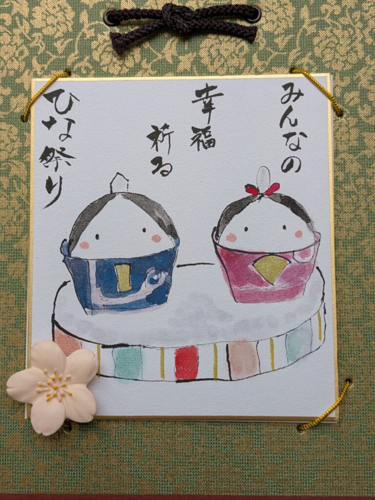 🎨絵手紙は、季節を先取りし、色紙にお雛様を描かれました